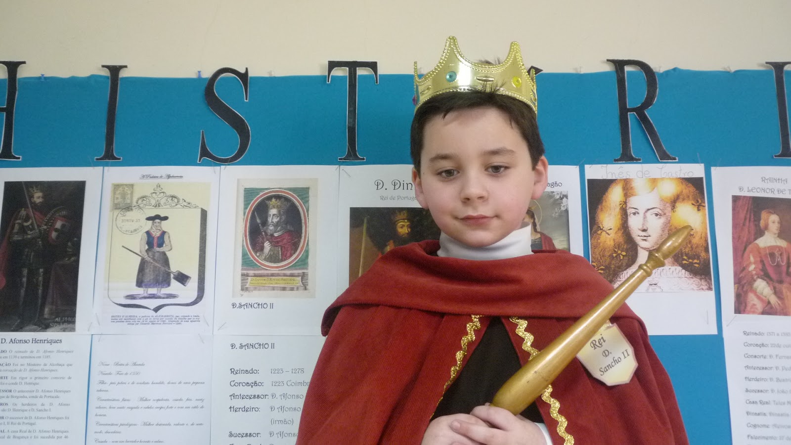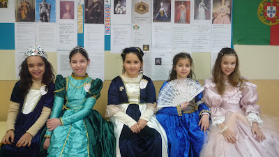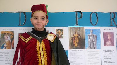 Na nossa escola, o tema aglutinador foi" Contos do Mar e da Terra". Para o 4º ano o subtema foi "Os Descobrimentos" e, por isso, a nossa turma decidiu homenagear os Reis e Rainhas de Portugal.